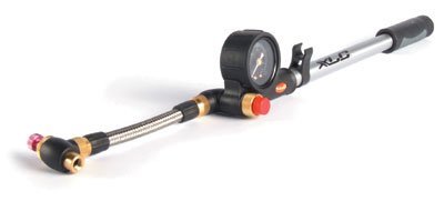Capable of reaching up to 400 psi. Aluminum components w/ synthetic material grip and outlet valve. Safety valve prevents pressure loss.